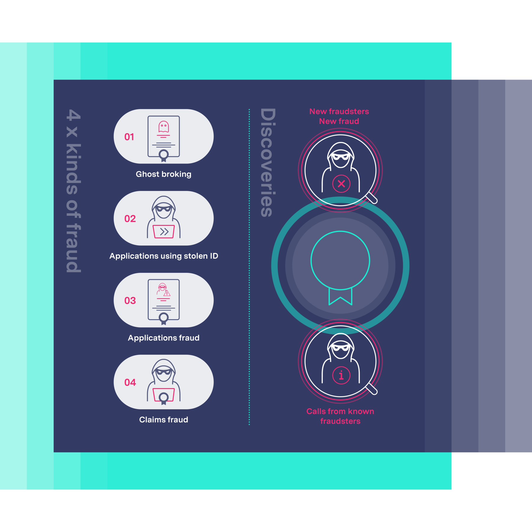 - Fraud found included ghost-broking and applications made using stolen identities